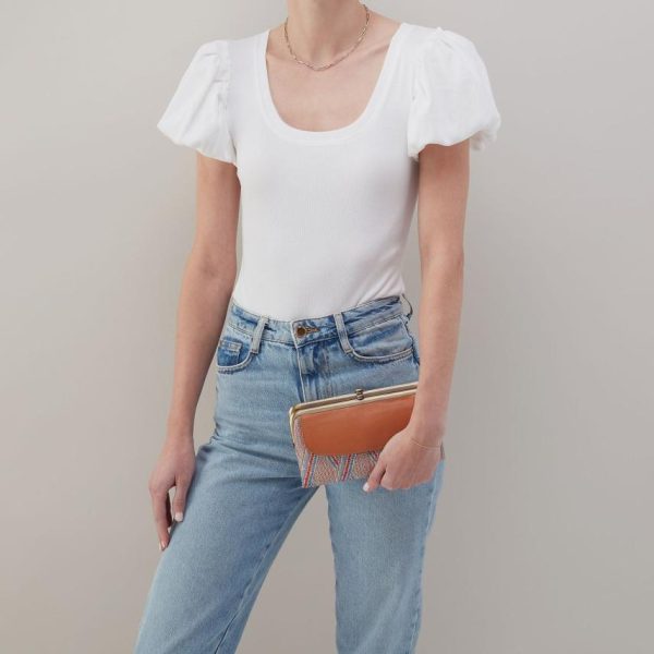 Owned and loved by over 1.5 million women, the Lauren clutch-wallet is the accessory you can’t live without. Wallet by day. Clutch by night. Lauren securely holds your phone, cash, cards, ID and more. Now in sunset raffia with a delicious butterscotch trim, Lauren’s embracing her moment in the sun.