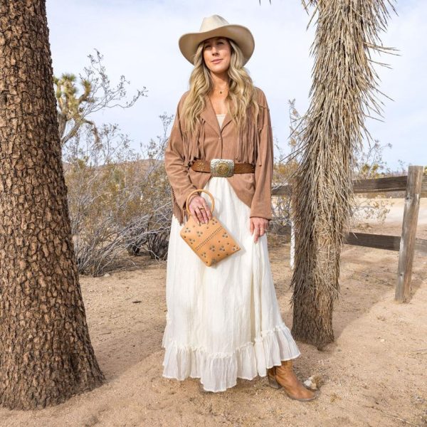Make a statement with this eye-catching clutch! Perfect for date night and beyond, it has just the right amount of space for your phone and card case. The turquoise stud details give it a bold, boho flair that’s sure to turn heads wherever you go.