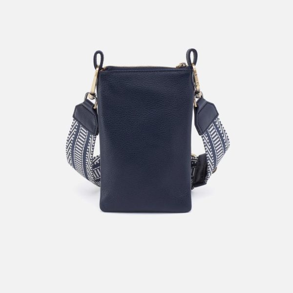 - Navy and white guitar strap with d-ring for attaching bag charms
