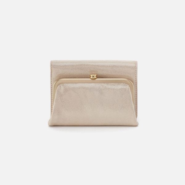 HOBO Small Wallets | Robin Compact Wallet In Metallic Leather Sand Shimmer